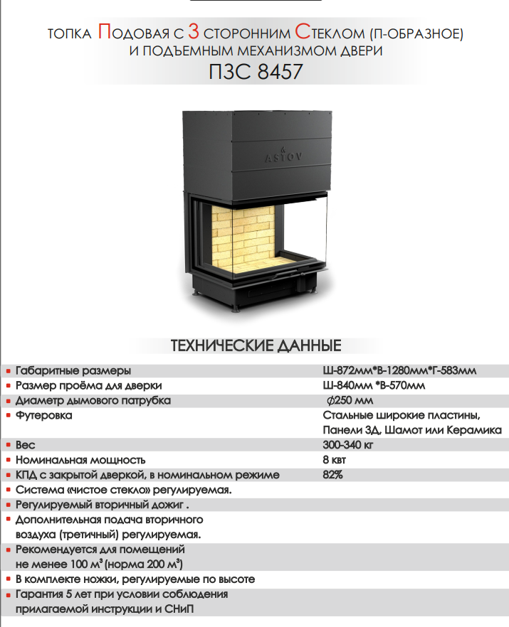 Номинальная теплопроизводительность устройства 8 кВт. Оптимальный объём зала 200 м3. Вы будете чувствовать себя комфортно, даже если очаг горит круглосуточно.